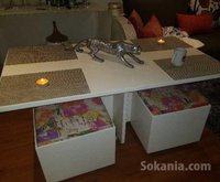 Publier une annonceJe mets en vente une table à manger et pour salon composée de 4 poufs couverts par le tissu Diva. dimensions 140*75*65 .