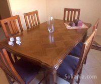 Publier une annonceJe mets en vente une table de salle à manger fabriquée du bois CHENE et 6 chaises, meilleur état La table est de 148 cm de longueur et 98 largueur et 78 cm hauteur la table dispose des sous ailes de 45 cm chacune, peut être utilisée par une famille de 8 personnes Le prix est très très intéressant par rapport la meilleur qualité et l'état presque neuf de la table .